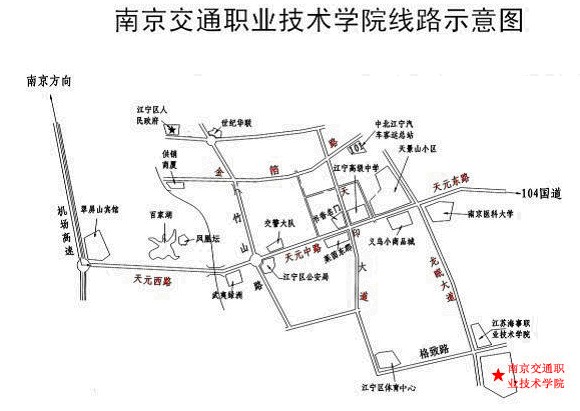 、市内乘2路、16路、26路、49路至中华门站,换乘“盛中线”至盛泰桥站(底站),转乘“盛科线”到南京交通职业技术学院站。