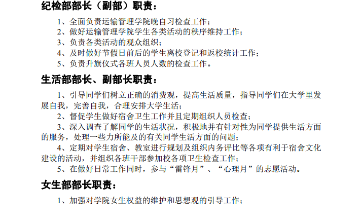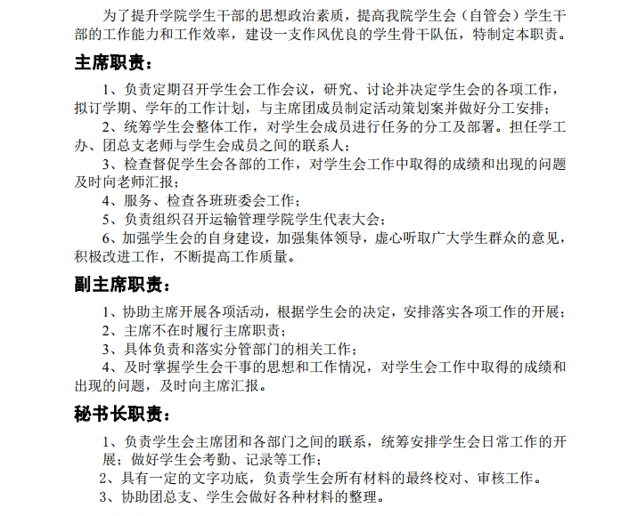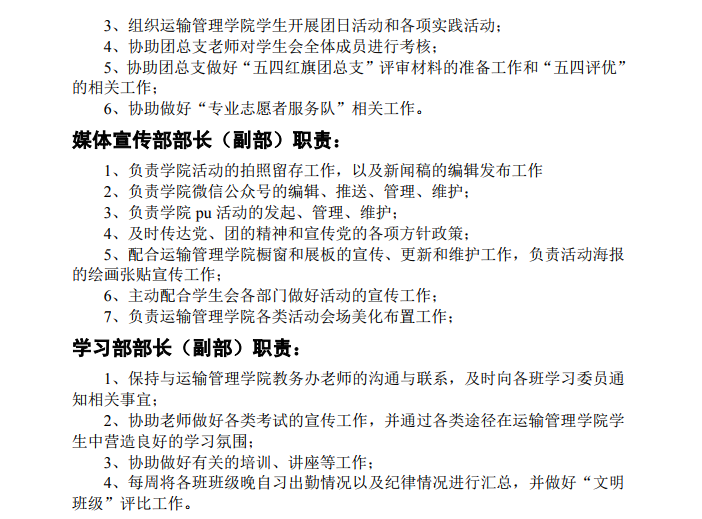 运输管理学院学生会岗位职责