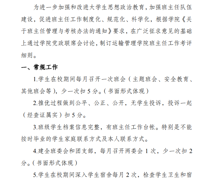 运输管理学院班主任工作考评细则