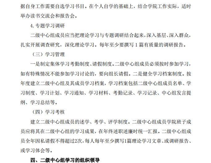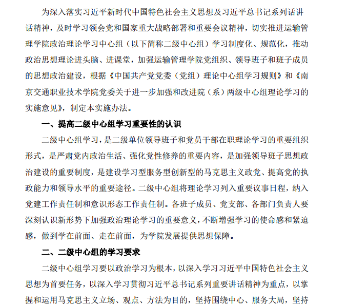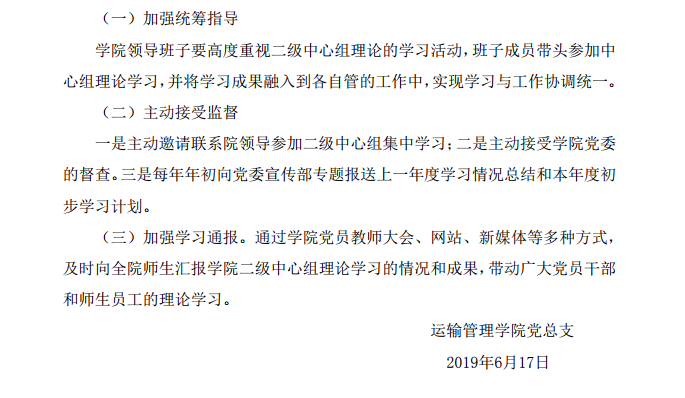 运输管理学院关于开展二级中心组理论学习的实施办法