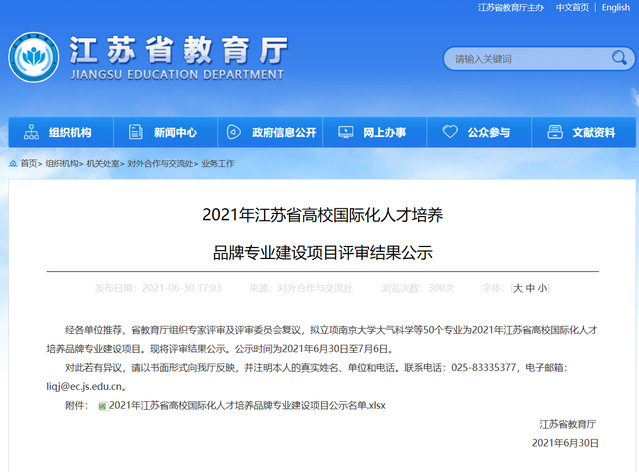 2021年6月30日,经学院申报,省教育厅组织专家评审及评审委员会复议,学院现代物流管理专业成功入选2021年江苏省高校国际化人才培养品牌专业建设项目。