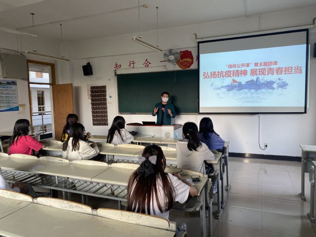 为进一步弘扬抗疫精神,引导广大青年在抗疫行动汲取奋进力量,增强青年责任感和使命感,我院于近期组织开展“弘扬抗疫精神 展现青春担当”信仰公开课暨主题团课。本次培训由团总支周寸飞老师主讲,抗疫先进代表、学生骨干和部分学生代表参与了培训学习。