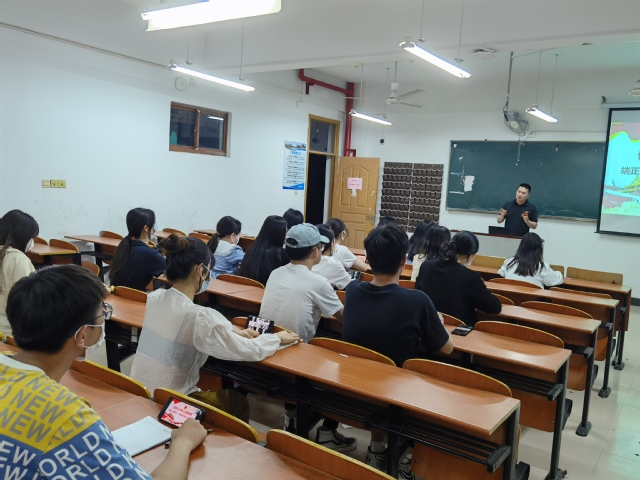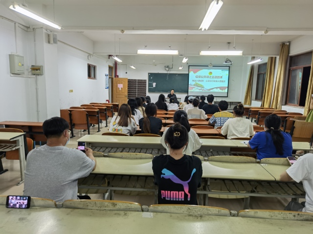 周老师首先以“什么是正确的入团动机?”引发在场同学思考讨论;接下来,周老师用生活实例分析入团动机,引导入团积极分子端正入团动机,加强自身思想建设,积极投身志愿服务;随后,周老师讲解了团的历史和团员的责任义务等基本理论知识,增强了广大青年思想认识。最后,在场入团积极分子踊跃上台分享了各自的成长经历和志愿服务情况,表达了强烈的入团意愿。