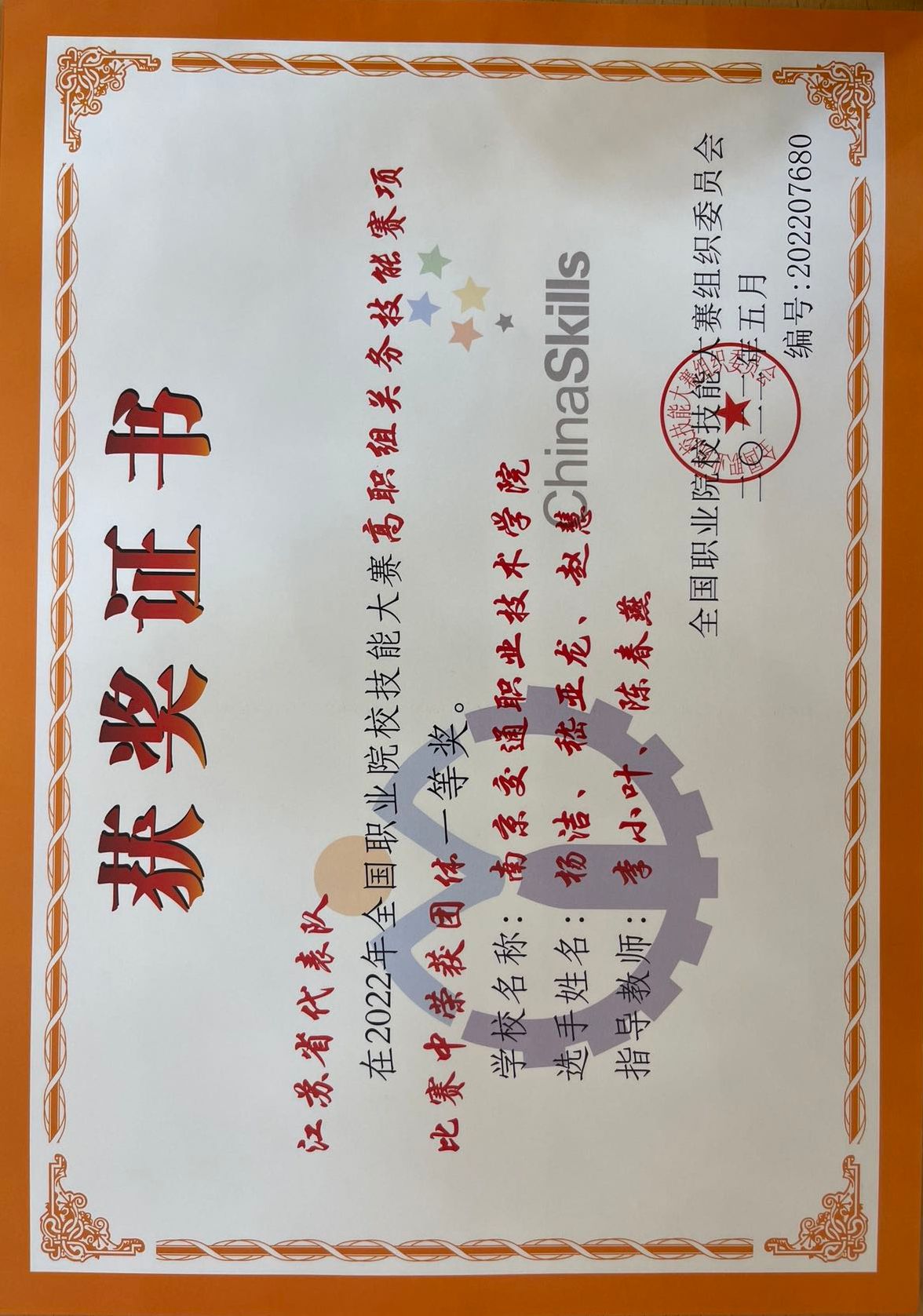 2022年全国职业院校技能大赛高职组 关务技能赛项比赛中获团体一等奖