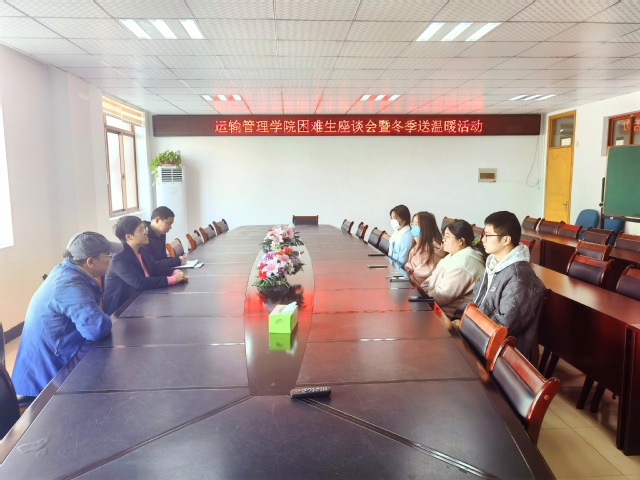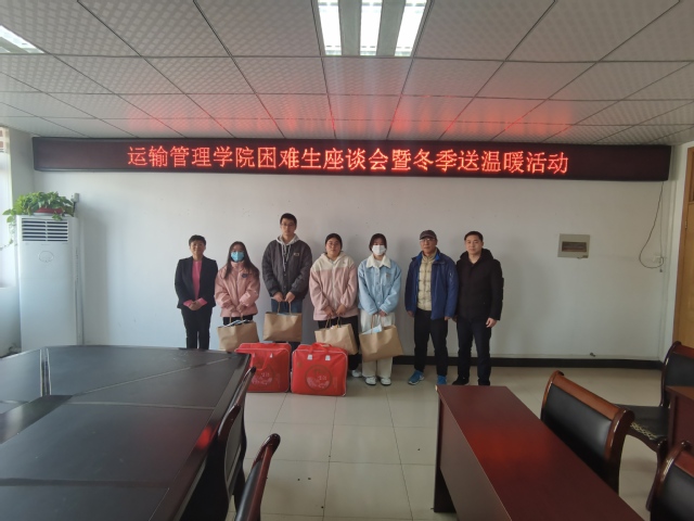 为进一步落实精准资助工作,关心慰问家庭经济困难学生和少数民族学生,运输管理学院于2022年12月13日在齐贤楼420会议室开展困难生座谈会暨冬季送温暖活动,运输管理学院党总支书记王艳梅、党总支副书记葛明亮、负责资助工作的辅导员肖威以及学院困难生和少数民族学生代表参会。