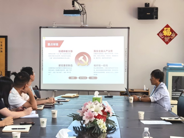 督查会上,张家俊同志代表校督查组对本次党建工作督查的内容和督查形式进行了介绍。党总支书记王艳梅对照本次督查工作要求,结合组织部、宣传部、纪委办等部门的工作要求,作了题为“以生为本、党政协同、打造高质量人才培养新高地”的工作汇报。重点介绍了党总支标杆院系、样板党支部、“双带头人”党支部书记工作室及书记项目的建设进程,取得的阶段性成果、建设中存在问题及下一步的工作打算等内容。王艳梅书记立足学院发展,以党政工作融合为切入点,以学院重点建设项目为抓手,积极推动学院专业建设、教学改革及党建创新实践,对存在问题不避讳不推诿,对未来工作有谋划有思考,为学院下半年的党建工作奠定了基础。
