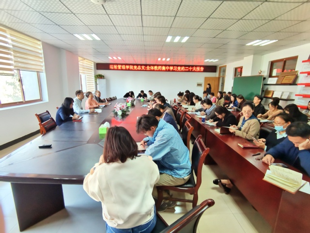 为深入学习党的二十大报告,紧跟党中央步伐。10月19日,运输管理学院党总支于齐贤楼420会议室,召开全体教师学习党的二十大报告会议,党总支书记王艳梅支持会议。
