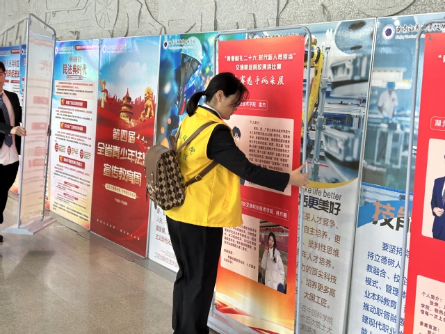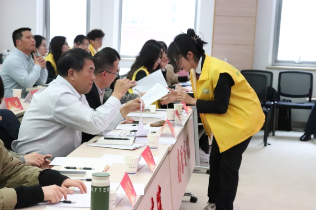 比赛当天,志愿者全部提前到岗,整个会议厅都是穿着黄马甲的志愿者们忙碌的身影。他们认真指导参赛者们签到抽签,细致地帮助参赛者们提交参赛资料,带领参赛者们提前彩排,解答带队老师们的相关疑问,充分展现了自己的专业服务、认真态度和“全心全意为人民服务”的雷锋精神。
