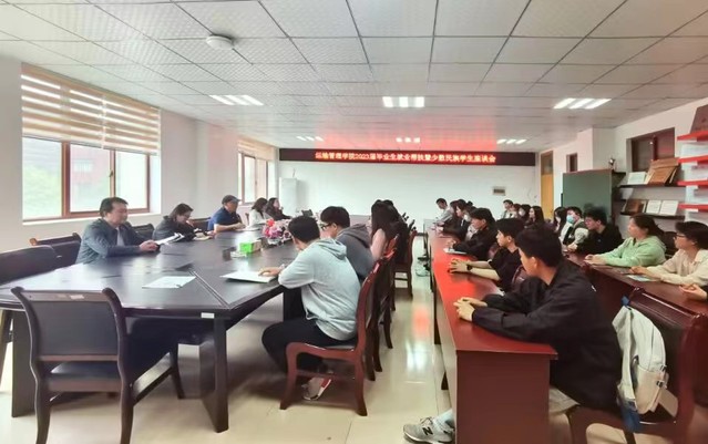 活动伊始,与会人员参加了学院组织开展的专场招聘会,与用人单位、应聘学生进行了深入细致交流。随后,与会人员参加了学院2023届毕业生就业帮扶暨少数民族学生座谈会,会上毕业生分享了实习、预就业情况,同时提出了就业存在的困难。参会领导与老师针对毕业生反映情况进行了反馈,对相应困难给予了就业指导。最后,关工委徐老师跟进帮扶少数民族毕业学生,并进行了毕业前一对一关爱与就业指导。
