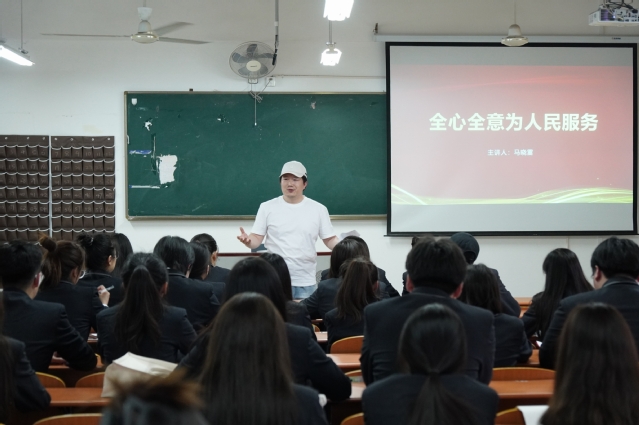 授课中,马晓雷老师从“中国共产党是中国工人阶级的先锋队,同时是中国人民和中华民族的先锋队”切入,结合时事政治、工作实际等,生动讲述了中国共产党始终同人民同呼吸、共命运、心连心,朝着奋斗目标坚定前行的发展历程。他用朴实又恳切的话语要求同学们要做到三点:一是珍惜学习机会,在学习教育中坚定理想信念,迅速转变角色,增强为人民服务的意识;二是切实增强为民服务的本领,既把学到的知识运用于实践,又在实践中增长解决问题的本领;三是要心系同学,始终做到信仰坚定,立场坚定,意志坚定,努力提升为人民服务的毅力和定力。