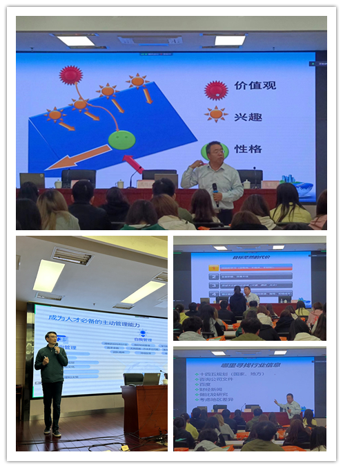 花卫国老师以自己从事的IT行业为例,从HR的角度向同学们展示了企业培养人才的方式和员工在企业中可以把握的机遇。他告诉同学们,要想在企业中顺利发展取得成功,个人的主动管理能力将起到主导作用,良好的自我管理能够让自己对时间分配、目标任务进行更合理的规划,从而实现自己的职业目标。