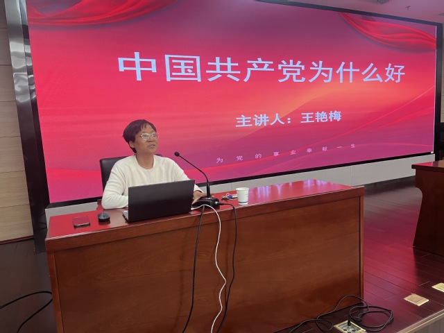 党总支书记王艳梅作入党启蒙教育,王书记以《中国共产党为什么好》为题,从好的成员、好的理论、好的群众关系、好的组织架构、好的传统和作风五个维度,结合学习贯彻习近平新时代中国特色社会主义思想主题教育的相关要求,运用史实资料和近期国内外正在发生的一系列重大时事事件,深刻阐释了中国共产党为什么能、马克思主义为什么行、中国特色社会主义为什么好这一重大问题,希望2023级新生们能够坚定政治信仰,爱党爱国爱社会主义,在思想上不掉队,在学习上不落后,在行动上向前冲,做到艰苦奋斗、吃苦耐劳、脚踏实地、勇往直前,成为榜样,率先垂范!