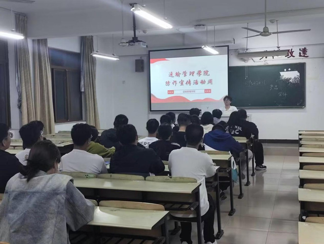 学院组织开展“防诈宣传周”活动。学院组织23、22级学生观看、学习防诈宣传视频;联合学校保卫处邀请高新园派出所民警,针对所有21级同学开展“反诈宣传进校园”安全宣传课;利用教学楼大屏播放防诈、宣传视频,在“青春运管”微信公众号上推送防诈宣传系列推文等,进一步提高学院所有同学的安全防范意识和防诈能力。