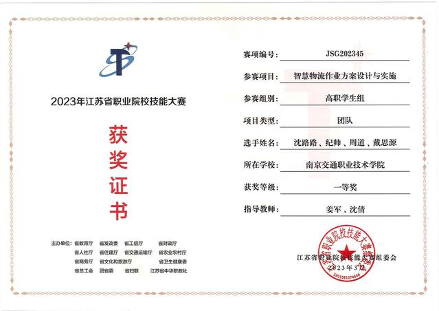 2023年江苏省职业院校技能大赛“智慧物流作业方案设计与实施”赛项一等奖(团队)