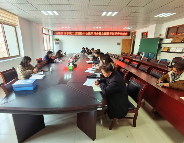 为深入学习贯彻习近平新时代中国特色社会主义思想主题教育,11月28日,运输管理学院召开十一月份二级理论学习中心组学习会,接受学院党委工作组巡学旁听。学院党委巡学旁听第六组组长、副院长刘雪芬,成员黄灿老师、毛雪逸老师参加旁听,运输管理学院党总支委员、党支部委员及科室负责同志参加学习会,党总支书记王艳梅主持。