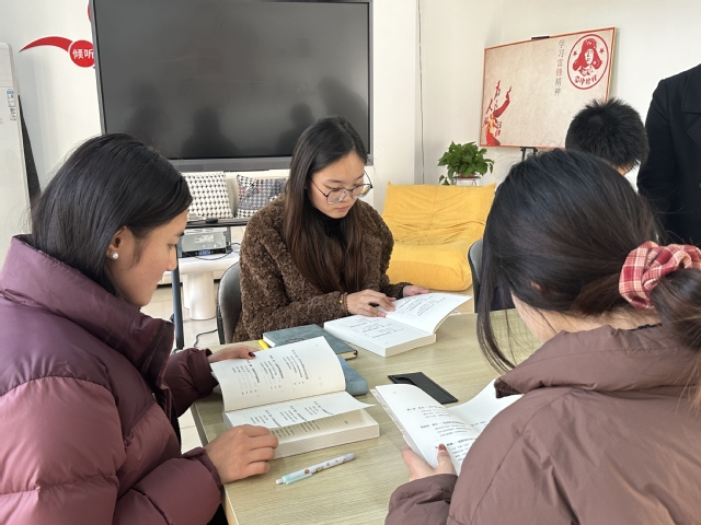 接着同学们开始了自己的阅读,安安静静读书,认认真真学习。期间,同学们进行了学习交流。大数据与会计专业2201班代玲分享道,“新时代青年要坚持党的领导和马克思主义中国化,向着红旗指引的方向努力奋斗。”关务与外贸服务专业2202班黄峥妍感悟道,“实践是第一位的,我们要在了解本国国情的基础上产生自己的理论并进行理论创新。”