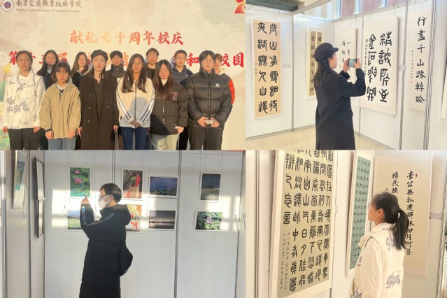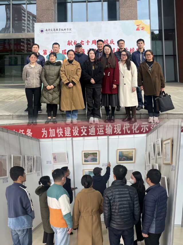 师生们在画作、书法和篆刻等作品前停留,不时被画作中出淤泥而不染的气质感染,被文字中无畏的勇气和坚定的信念感召。指引我们坚守本位,不被外界干扰和诱惑。