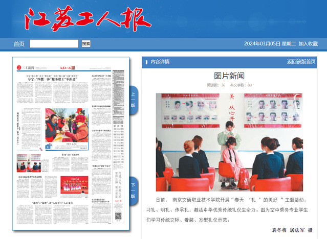 近日,《江苏工人报》对南京交通职业技术学院“春天‘礼 ’的美好”主题活动进行刊载报道。