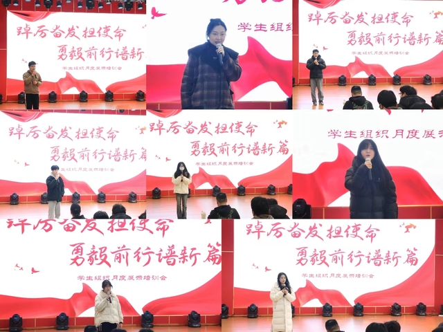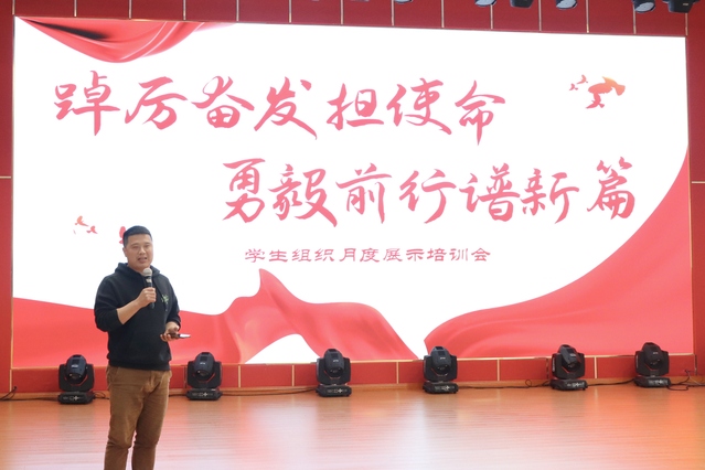为提高学生组织工作能力,做好学生组织骨干培训,教育引导广大学生组织成员自律自强,运输管理学院于3月6日下午在大学生活动中心226会议室举办了“踔厉奋发担使命,勇毅前行谱新篇”学生组织月度展示培训会。党总支副书记葛明亮、团总支书记周寸飞、第18届学生会全体成员参与了本次会议,会议由学生会主席团成员王梦雷同学主持。