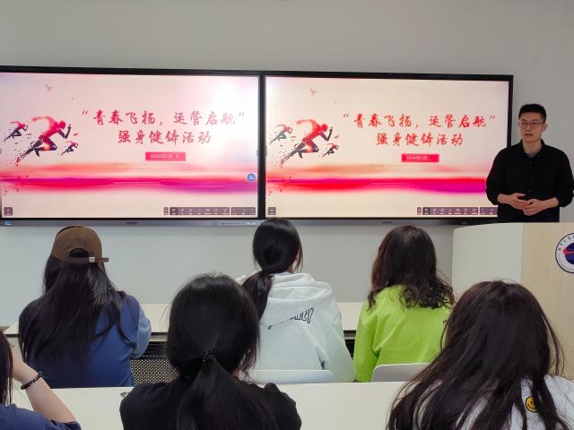 杨涛老师从活动规则、活动安排、活动意义三个方面,详细解读了运输管理学院开展“青春飞扬,运管启航”强身健体活动方案,教育引导参与学生要充分利用好本次活动平台,严格按照活动规则,不得无故缺席,注重安全防范,通过积极锻炼,大力加强自身身体素质,弘扬运管学子风采。希望大家在参与活动过程中,要坚持弘扬中华体育精神,牢固树立团队合作意识,展现运管学子坚韧不拔、勇往直前的精神风貌,为提高运输管理学院的整体学生体质健康赋能。