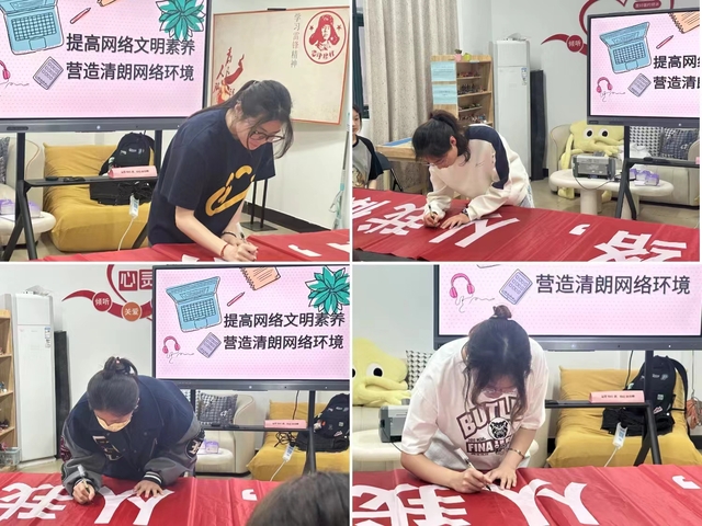 5月6日,院学生会媒体宣传部在“一站式”学生社区运输管理学院“半亩方塘”工作站开展“提高网络文明素养,营造清朗网络环境”主题团日活动。学院学会生媒体宣传部部长朱诗宇同学带领同学们学习了《文明上网自律公约》,号召同学们遵守法律法规,从自身做起,坚持文明上网、安全上网,做清朗网络环境的守护者和共享者。随后,全体同学共同观看了《团团微课:青少年网络素养公开课》,并进行了“清朗网络,从我做起”的签名承诺活动。