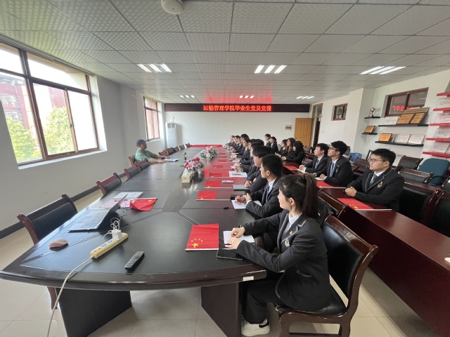为深入学习贯彻习近平新时代中国特色社会主义思想,加强毕业生党员教育,引导毕业生党员坚定理想信念、厚植爱国之情、砥砺强国之志、实践报国之行,运输管理学院党总支第一党支部于 5 月 10 日组织开展了“青春心向党 奋进新征程”毕业生党员党课学习。党总支副书记葛明亮主讲、全体毕业生党员和发展对象同学参加,辅导员刘宇老师主持。