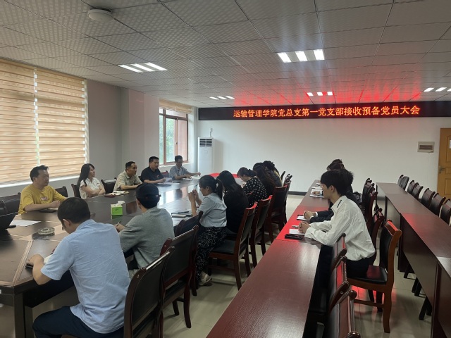 6月28日,运输管理学院党总支第一党支部召开党员大会,讨论接收六位同志加入中国共产党事宜。会议由第一党支部书记周寸飞同志主持,党总支书记史立峰、党总支副书记林榕、副院长马耀文出席,入党介绍人、支部全体党员参加会议。