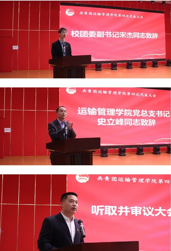 运输管理学院党总支书记史立峰发表致辞,并提出三点希望与团员同学们共勉:一要牢记嘱托,紧跟党走,铸牢信念强根基;二要勤学苦练,知行合一,逐梦青春增才干;三要激扬理想,服务大局,勇担使命共成长。他期待在大家的共同努力下,学院的共青团工作再上新台阶,取得新突破。