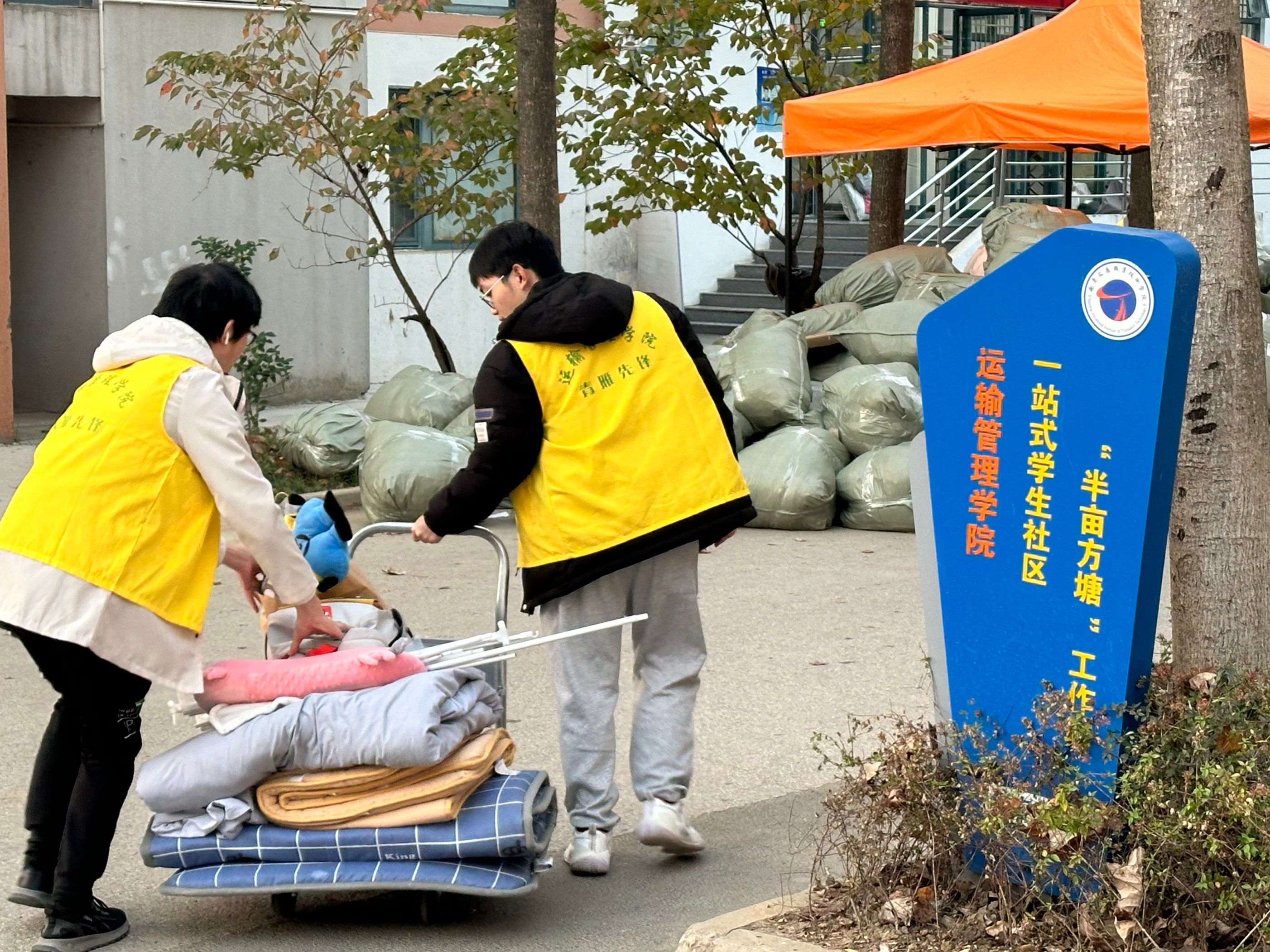 11月19日至22日,运输管理学院分团委青雁先锋志愿者服务队积极开展“情暖校园 传承爱心”行李搬运志愿服务,帮助大三毕业生搬运离校行李。