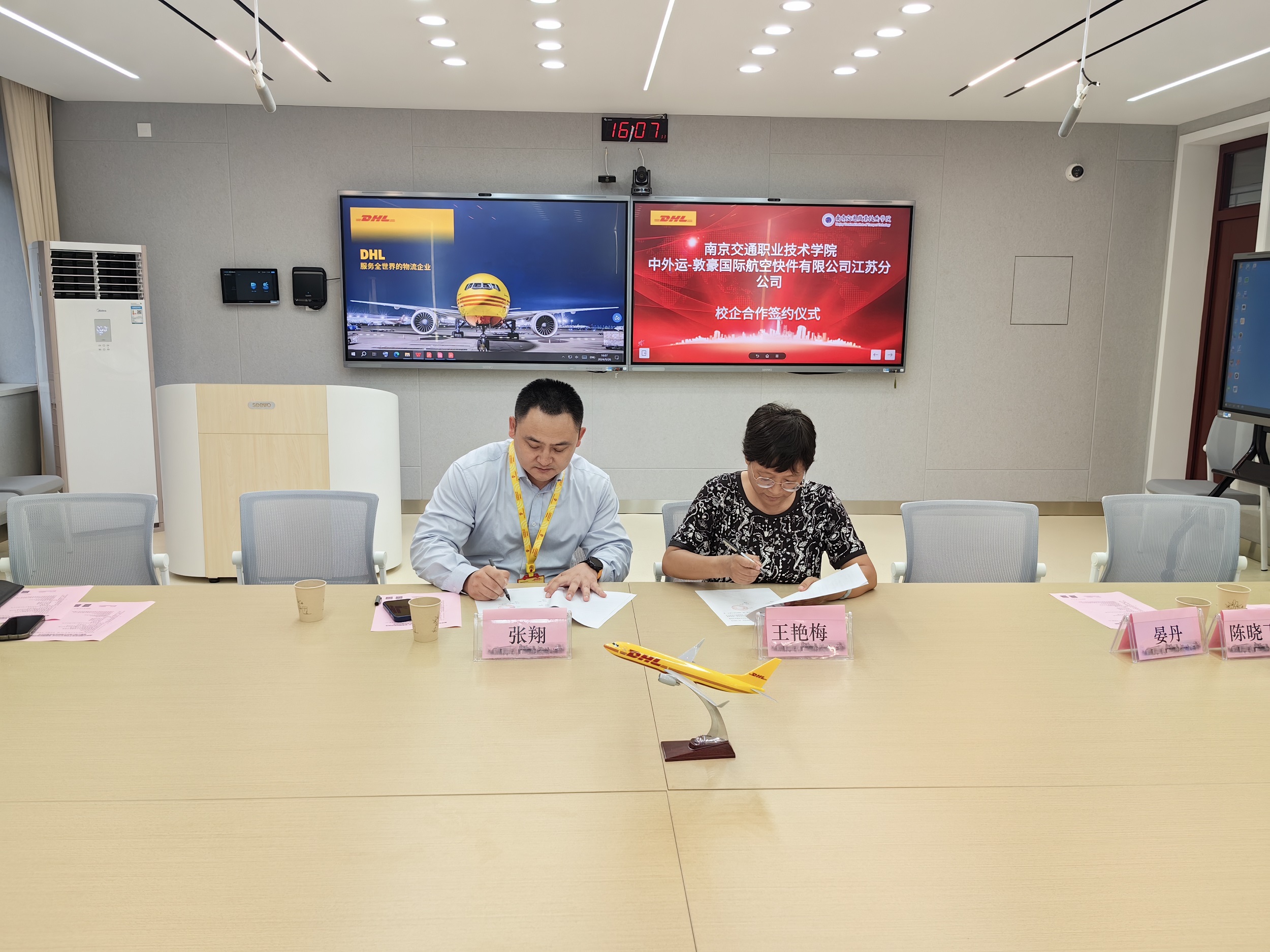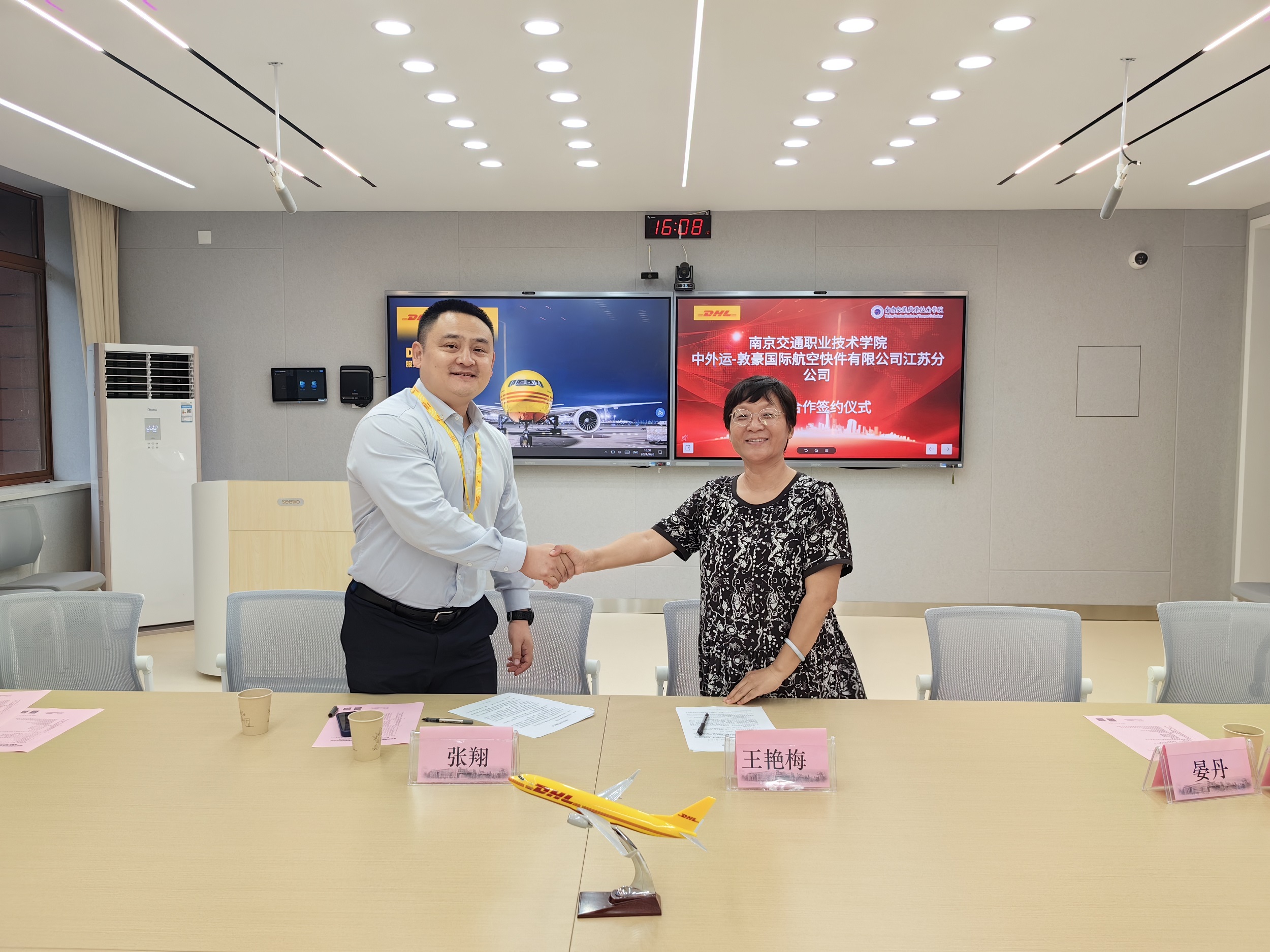 随后,王艳梅、张翔分别代表南京交通职业技术学院和中外运-敦豪国际航空快件有限公司江苏分公司签署了合作协议,双方遵循“优势互补、共谋发展、互惠互利、合作共赢”合作原则,将在人才培养方案的制定、专业建设、教材开发、教学资源库建设、培训基地建设、人才资源共享等诸多方面展开合作。今后,双方将进一步加强沟通交流,畅通合作渠道,挖掘合作潜力,发挥各自优势,共促专业发展和企业发展。