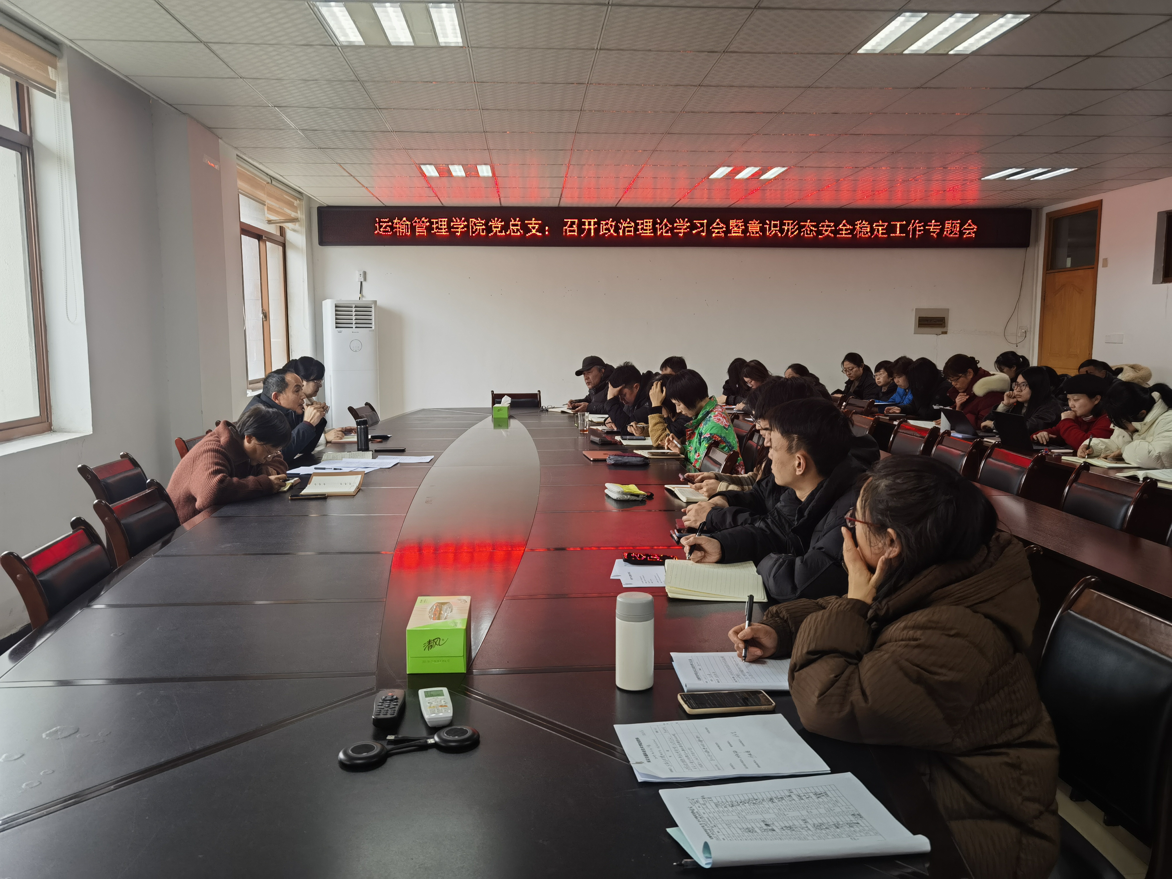 3月5日下午,运输管理学院党总支召开政治理论学习会暨意识形态安全稳定工作专题会议,学院全体教职工党员参加会议,党总支书记史立峰主持。