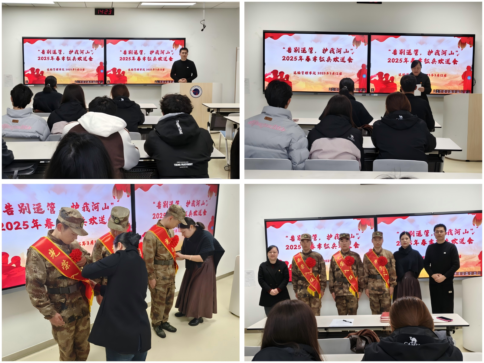 2025年3月12日下午,运输管理学院于齐贤楼415室开展“告别运管,护我河山”2025年春季征兵欢送会。运输管理学院党总支副书记林榕、征兵辅导员杨涛、班主任代表、学生代表出席本次会议。