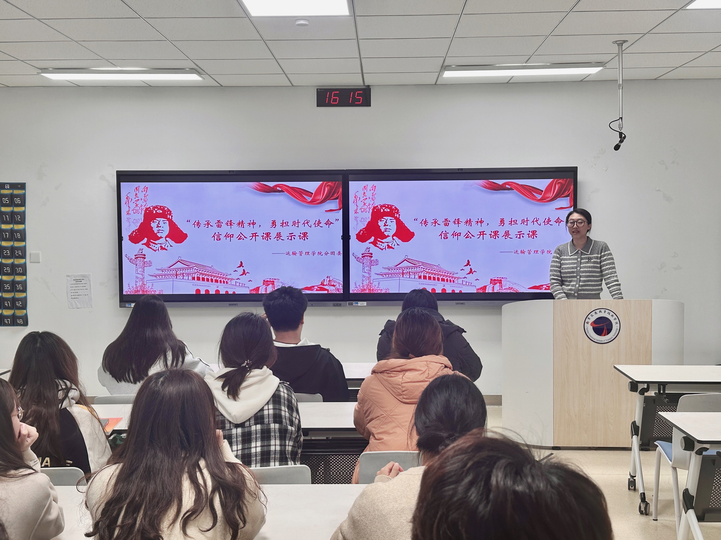 在第62个学雷锋纪念日之际,为深入贯彻落实习近平总书记关于学习雷锋精神的重要指示精神,培育学生核心素养,涵养家国情怀,运输管理学院分团委于3月11日下午开展“传承雷锋精神,勇担时代使命”信仰公开课展示课。运输管理学院分团委书记刘宇授课,各年级团支书、学生组织负责人参与。