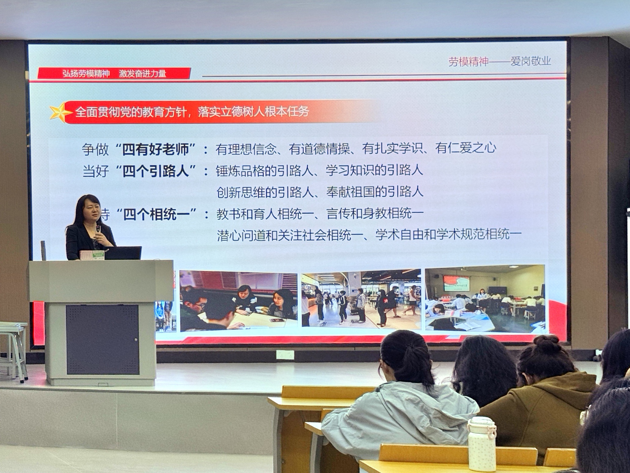 为了全面贯彻党的教育方针,坚持立德树人根本任务,大力弘扬劳模精神、工匠精神,促进同学们德、智、体、美、劳全面发展,在五一劳动节即将来临之际,2025年4月24日下午,运输管理学院在齐贤楼201教室开展“劳模工匠进校园”活动,运输管理学院林榕副书记主讲,近200名学生代表参加活动。