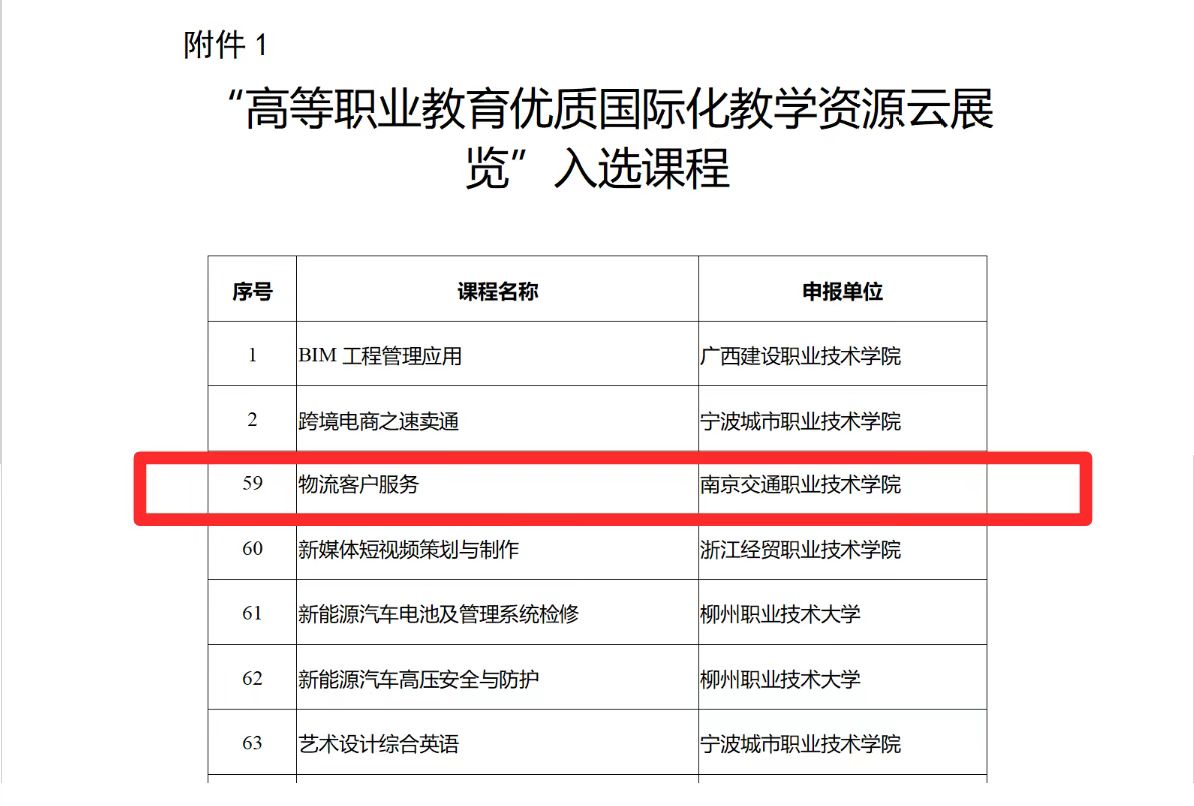 学院课程入选“高等职业教育优质国际化教学资源云展览”