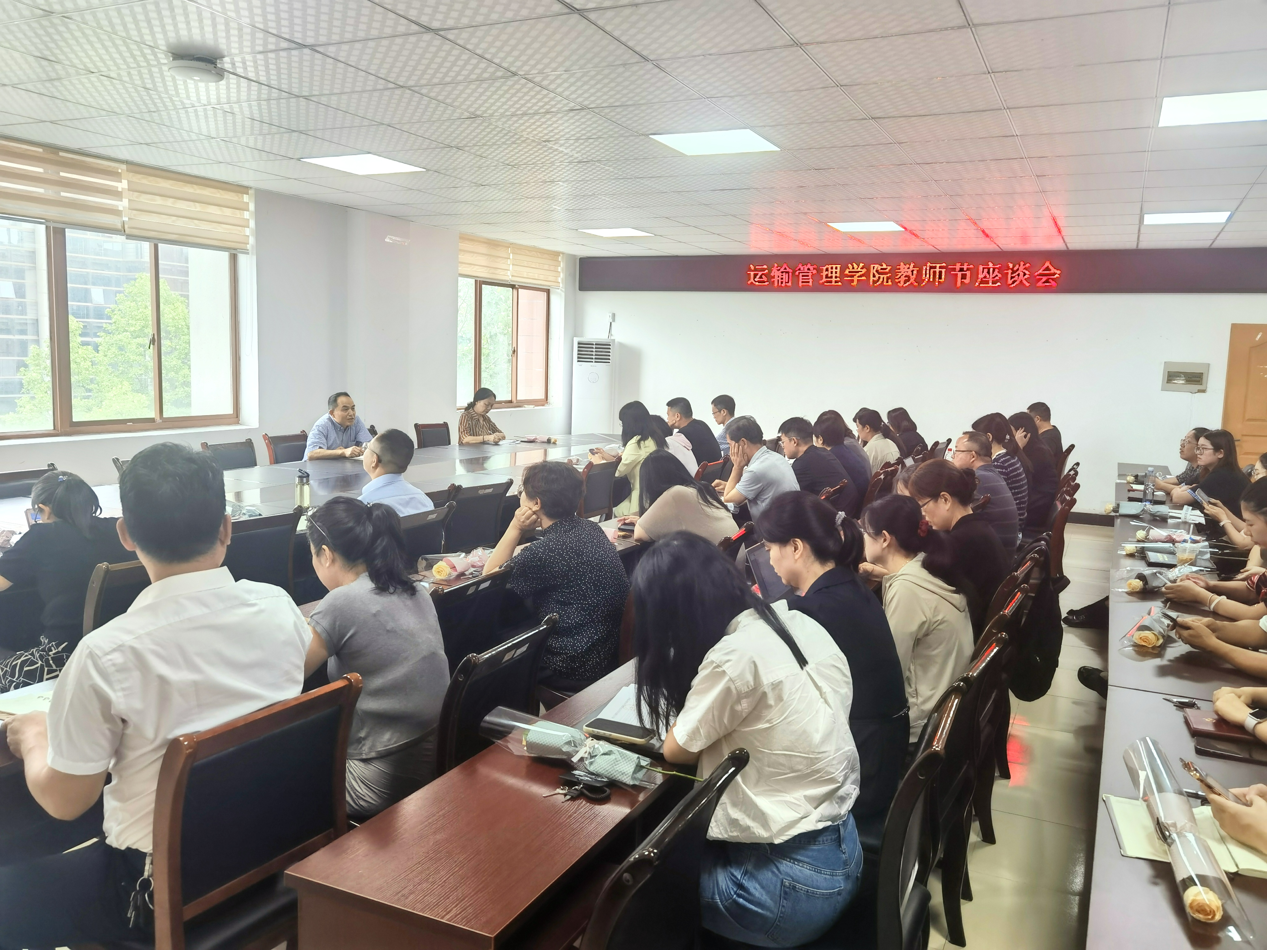 9月10日,运输管理学院在齐贤楼会议室召开“躬耕教坛,强国有我”教师节座谈会。学院党政领导班子成员、关工委常务副主任徐爱萍老师,以及各教研室教师代表共同参加。座谈会由党总支书记史立峰主持。