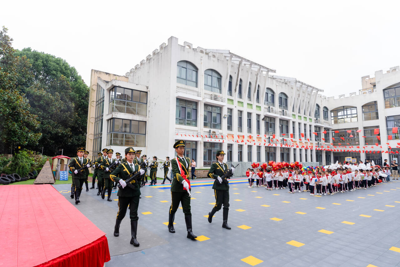 庄重的升旗仪式将活动推向高潮,校国旗护卫队成员,迈着整齐的步伐护送五星红旗入场,伴随着《义勇军进行曲》,五星红旗缓缓升起。大家注目行礼,爱国的种子在幼儿们心中悄然萌发。