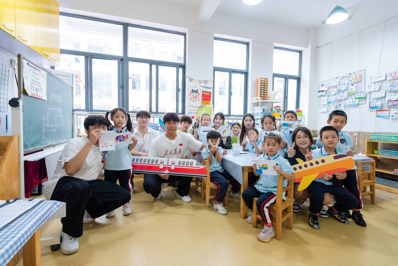 活动通过“大带小”沉浸式互动模式,让幼儿在趣味体验中感知交通运输与日常生活的关联,理解“交通连起小家与大国”的意义,随后,大学生志愿者们联手幼儿,共同唱响歌曲《国家》。