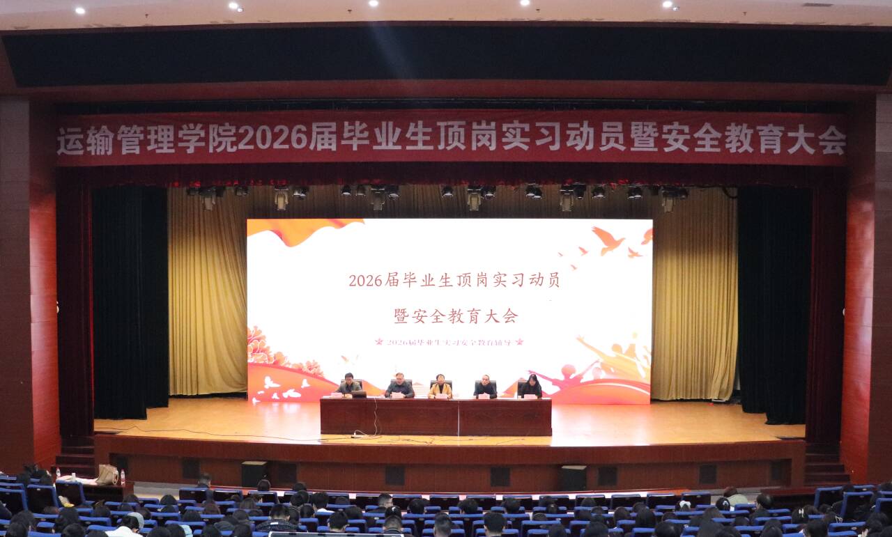 为扎实推进毕业生顶岗实习工作,引导学生明确实习任务、增强安全意识、做好职业规划,11月25日下午,运输管理学院在图书馆报告厅举行2026届毕业生顶岗实习动员暨安全教育大会。学校保卫处处长周家明、运输管理学院党政领导、教研室主任、2023级班主任、辅导员及全体2026届毕业生参加了本次大会。会议由运输管理学院党总支副书记林榕主持。