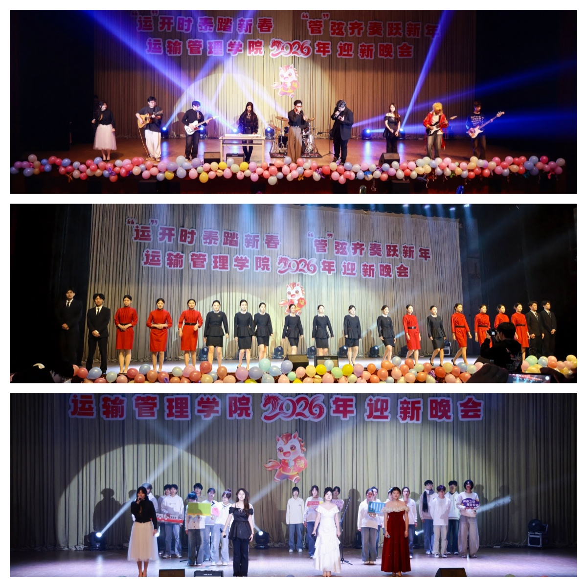 岁序更替,华章日新。12月29日晚,运输管理学院“‘运’开时泰踏新春,‘管’弦齐奏跃新年”2026年迎新晚会于图书馆报告厅温情启幕。校党委委员、副院长姜军,学工处副处长葛明亮,运输管理学院领导班子成员、各专业教研室主任、全体辅导员及教师代表与运管500名在校学子齐聚一堂,共赴这场青春盛宴,喜迎新年曙光。