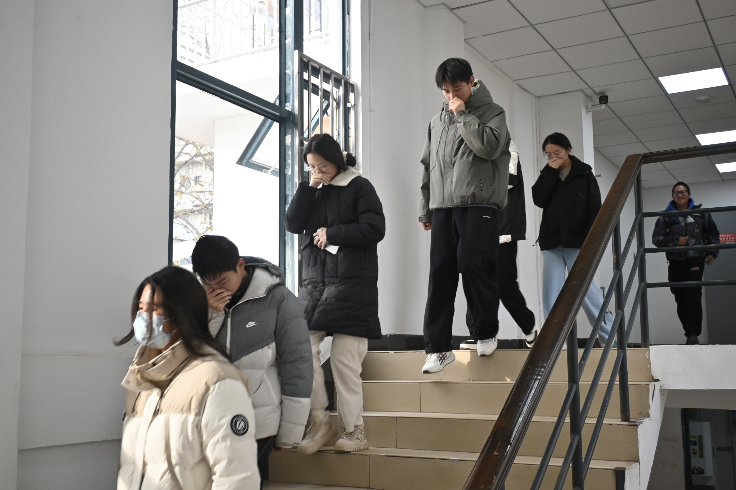培训中,肖威老师结合高校火灾典型案例,聚焦宿舍违规用电、易燃物品存放等高频隐患,详细讲解火灾预防要点、初期灭火技巧及火场逃生知识,演示灭火器“提、拔、握、压”操作口诀。理论讲解后,应急疏散演练随即启动,模拟学生公寓突发火情场景,学生们在引导下弯腰低姿、捂住口鼻,沿预定路线快速有序撤离至安全区域,全程紧张规范、秩序井然。