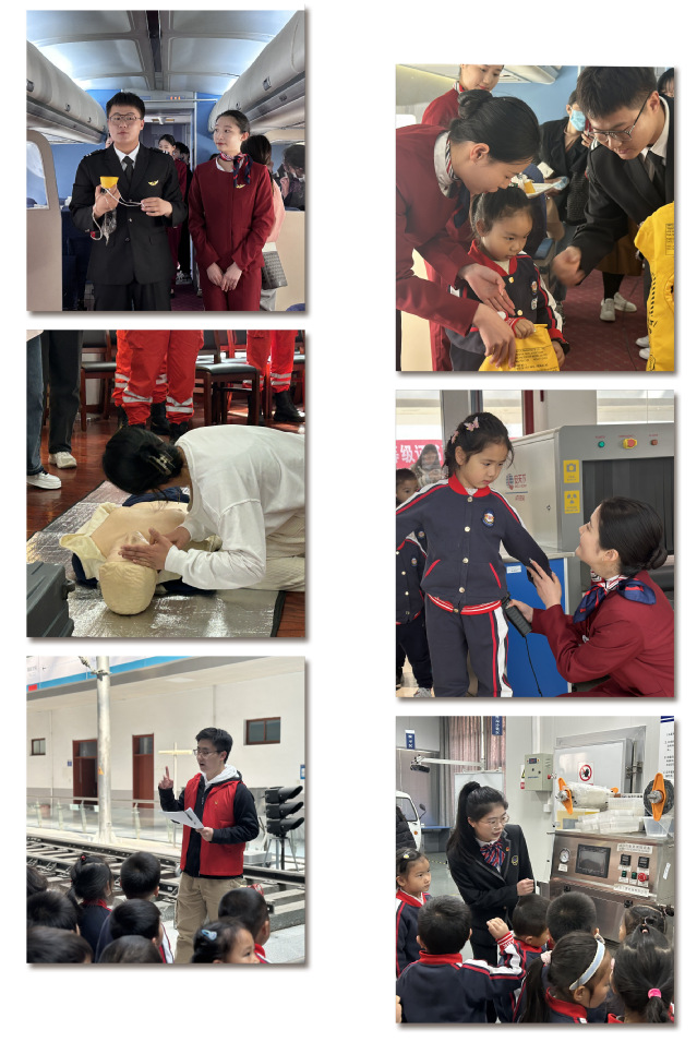 另一部分小朋友们在志愿者的带领下,分批次参观了物流仓储、轨道交通以及空中乘务实训室。通过倾听讲解、动手操作、亲身体验等方式深刻并全方位地了解和感受了我院的校园环境、实训设施及学习氛围;更是通过志愿者们对各类专业知识深入浅出的讲解,激发了对交通行业的好奇心,勾起了对探索交通行业的兴趣。