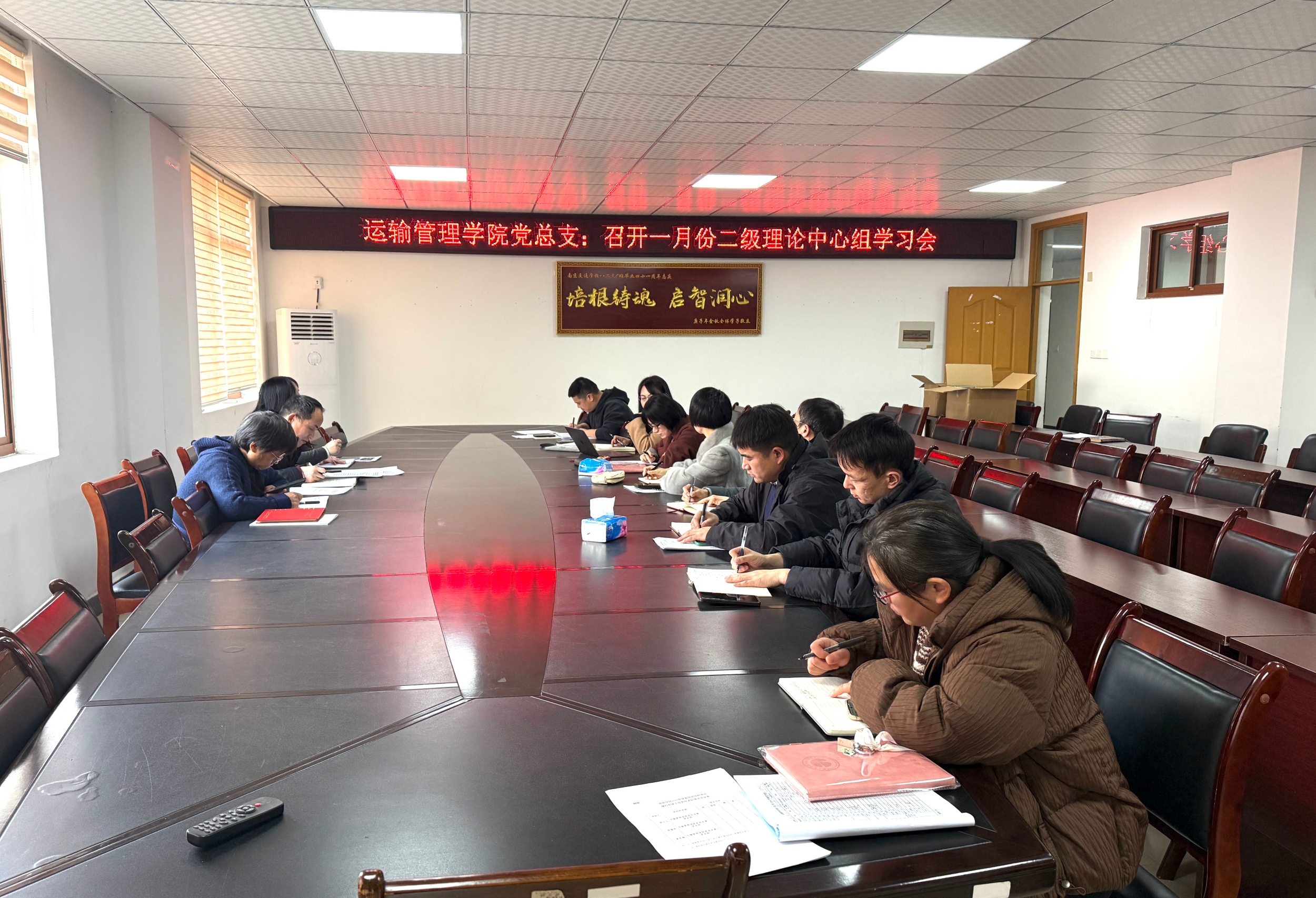 1月14日,运输管理学院党总支组织召开一月份二级理论学习中心组学习会。学院党总支二级理论学习中心组成员、各党支部书记、教研室主任等参加会议,党总支书记史立峰主持会议。